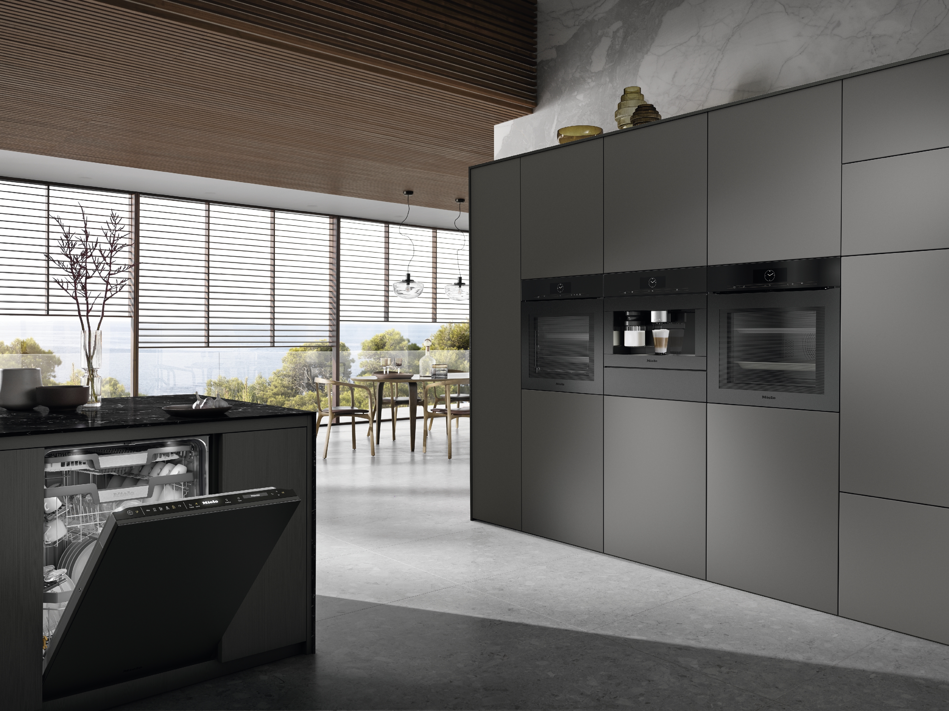 Mattschwarze Oberflächen sind zeitlos-elegant und lassen sich mit nahezu jedem Wohnstil kombinieren. Bei Miele finden Sie jetzt eine komplett neue Einbaugeräteserie in edlem Obsidianschwarz matt. Sie umfasst Backöfen, Backöfen mit Mikrowelle, Dampfbacköfen, Wärme- bzw. Vakuumierschubladen, Einbau-Kaffeevollautomat sowie Weinlagerschrank. Ergänzt werden diese Geräte um Induktionskochfelder, Dunstabzugshauben und Frontverkleidungen für Geschirrspüler mit Knock2Open-Technologie.